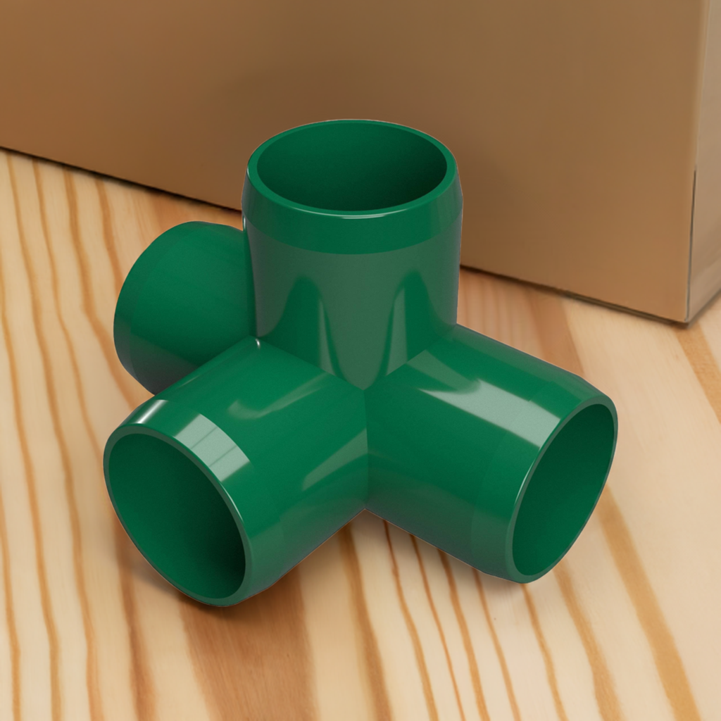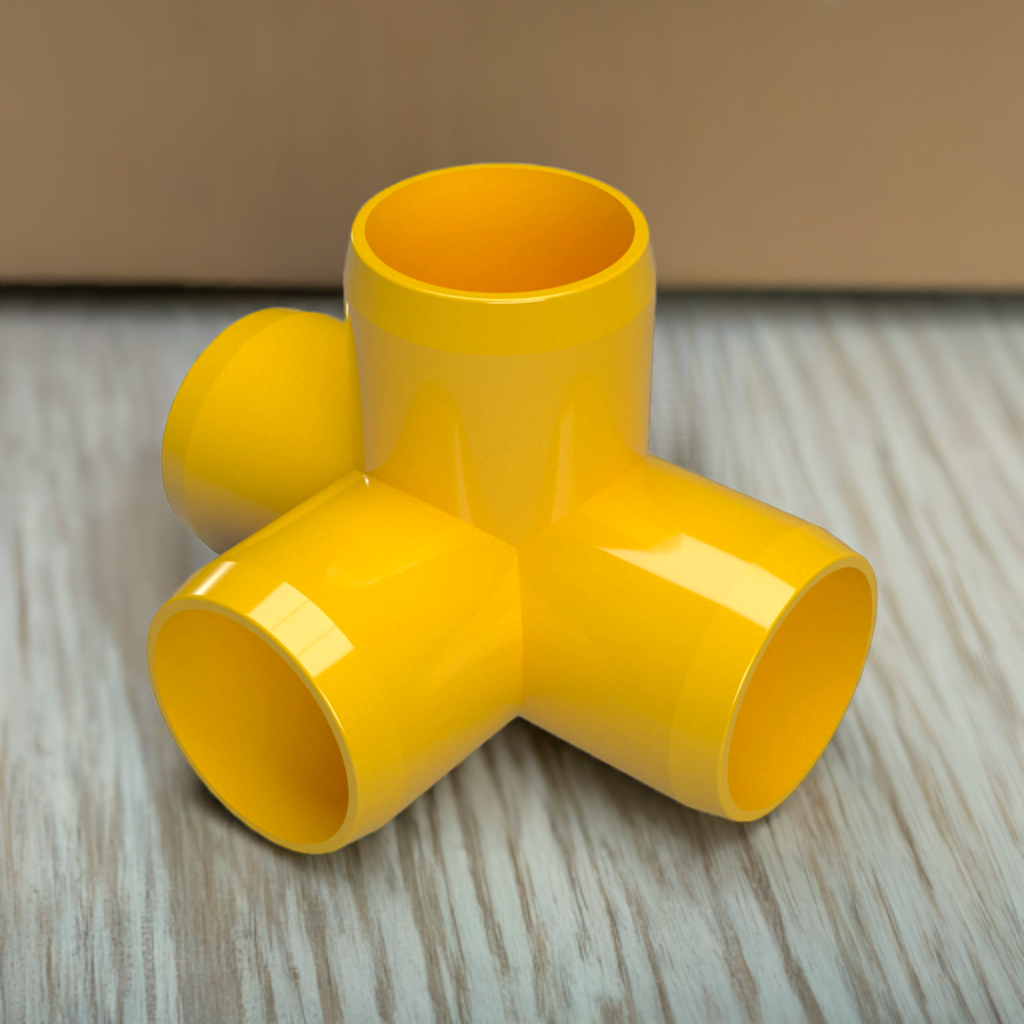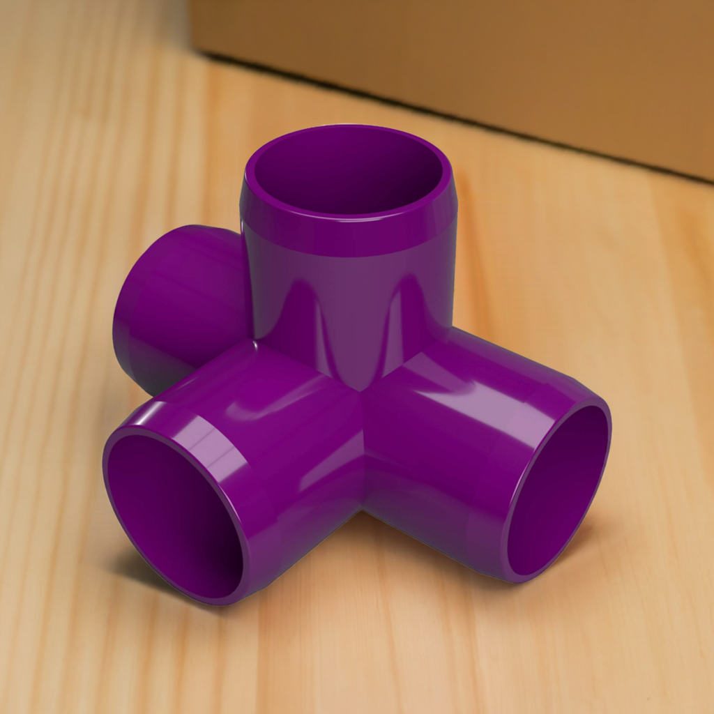 Build frame edges of structural PVC applications with the Formufit 1-1/2 in. Furniture Grade PVC 4-Way Tee. This PVC side outlet Tee connector joins 4 lengths of 1-1/2 in. Sch. 40 PVC pipe at separate planes with 3 horizontal connections and 1 vertical. Total of 60 fittings per box.