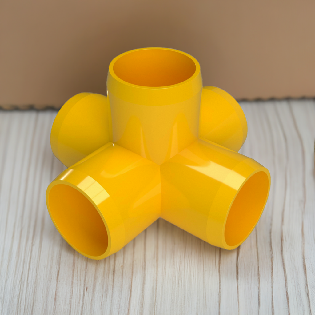 Build center supports of structural PVC applications with the Formufit 1-1/2 in. Furniture Grade PVC 5-Way Cross. This specialty PVC cross connector joins 5 lengths of 1-1/2 in. Sch. 40 PVC pipe at 5 points, 4 horizontal and 1 vertical. Total of 40 fittings per box.