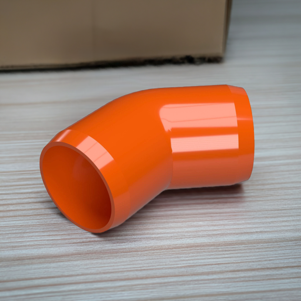 Build 45° connections for structural PVC applications with the Formufit 1-1/4 in. Furniture Grade PVC 45° Elbow. This PVC elbow connector joins 2 lengths of 1-1/4 in. Sch. 40 PVC pipe to create a 45° angle. Total of 90 fittings per box.