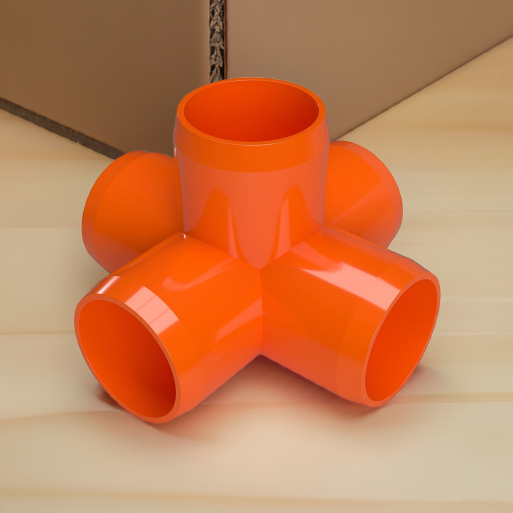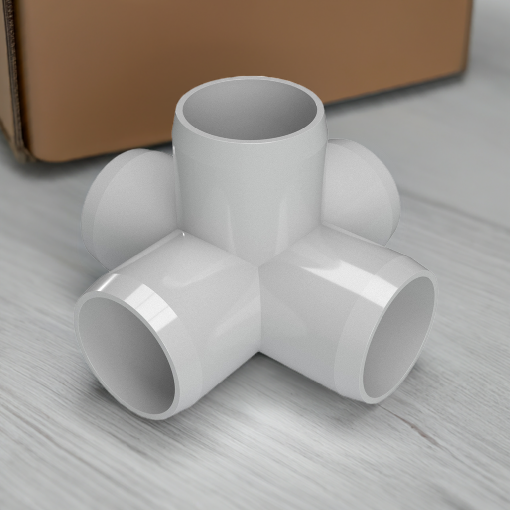 Build center supports of structural PVC applications with the Formufit 1-1/4 in. Furniture Grade PVC 5-Way Cross. This specialty PVC cross connector joins 5 lengths of 1-1/4 in. Sch. 40 PVC pipe at 5 points, 4 horizontal and 1 vertical. Total of 48 fittings per box.