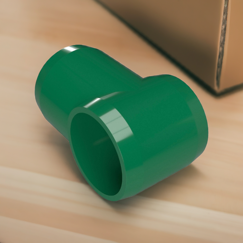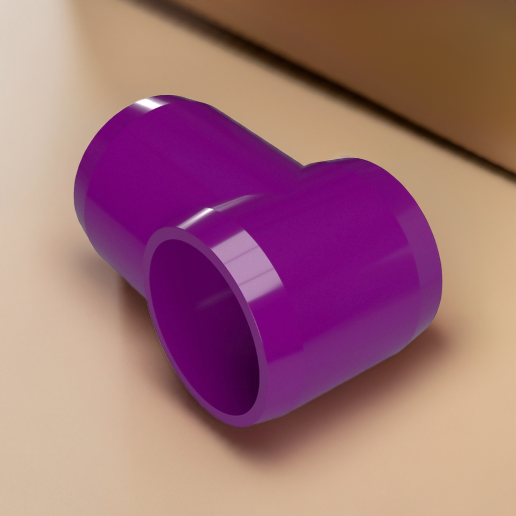 Build hinge or sliding points in structural PVC applications with the Formufit 1-1/4 in. Furniture Grade PVC Slip Sling Tee. This PVC hinge connector accepts 1-1/4 in. Sch. 40 PVC pipe one end, while another 1-1/4 in. Sch. 40 PVC pipe can be inserted perpendicularly to create a hinge or sliding mechanism. Total of 100 fittings per box.