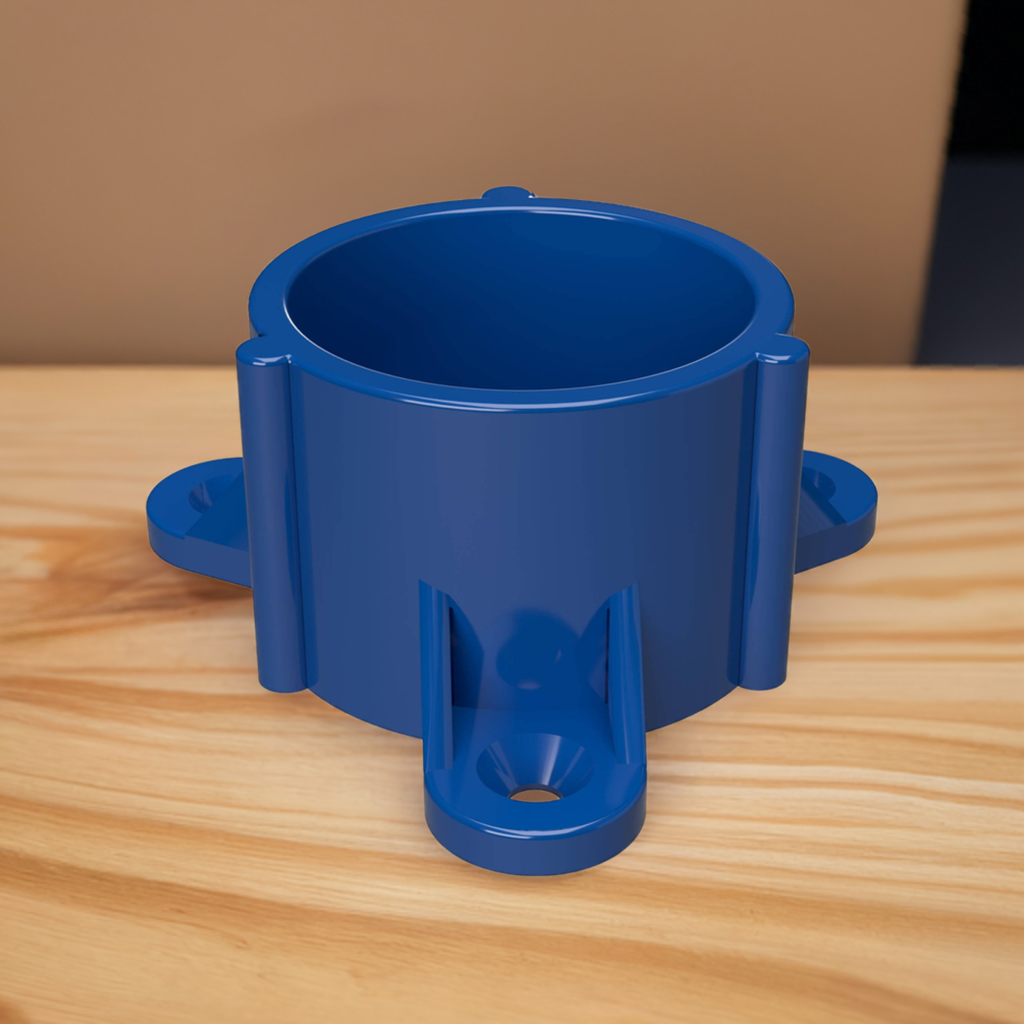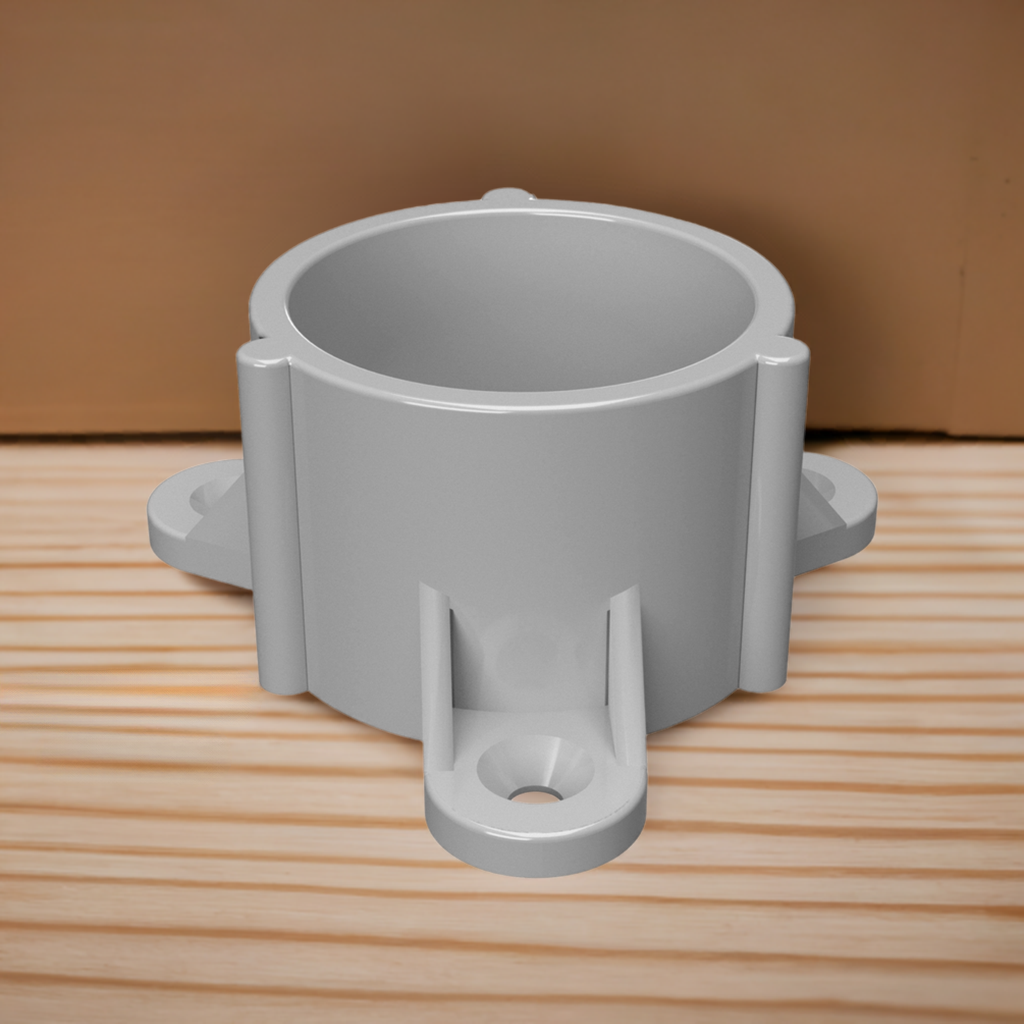 Connect PVC pipe to other materials, such as wood, metal and concrete with the Formufit 1-1/4 in. Furniture Grade PVC Table Screw Cap. This specialized PVC end cap slips over the end of PVC pipe and has 3 holes that allow fastener connection with flat surfaces. Common uses include attaching table tops to PVC frames and connecting PVC pipe segments to drywall. Total of 200 caps per box.