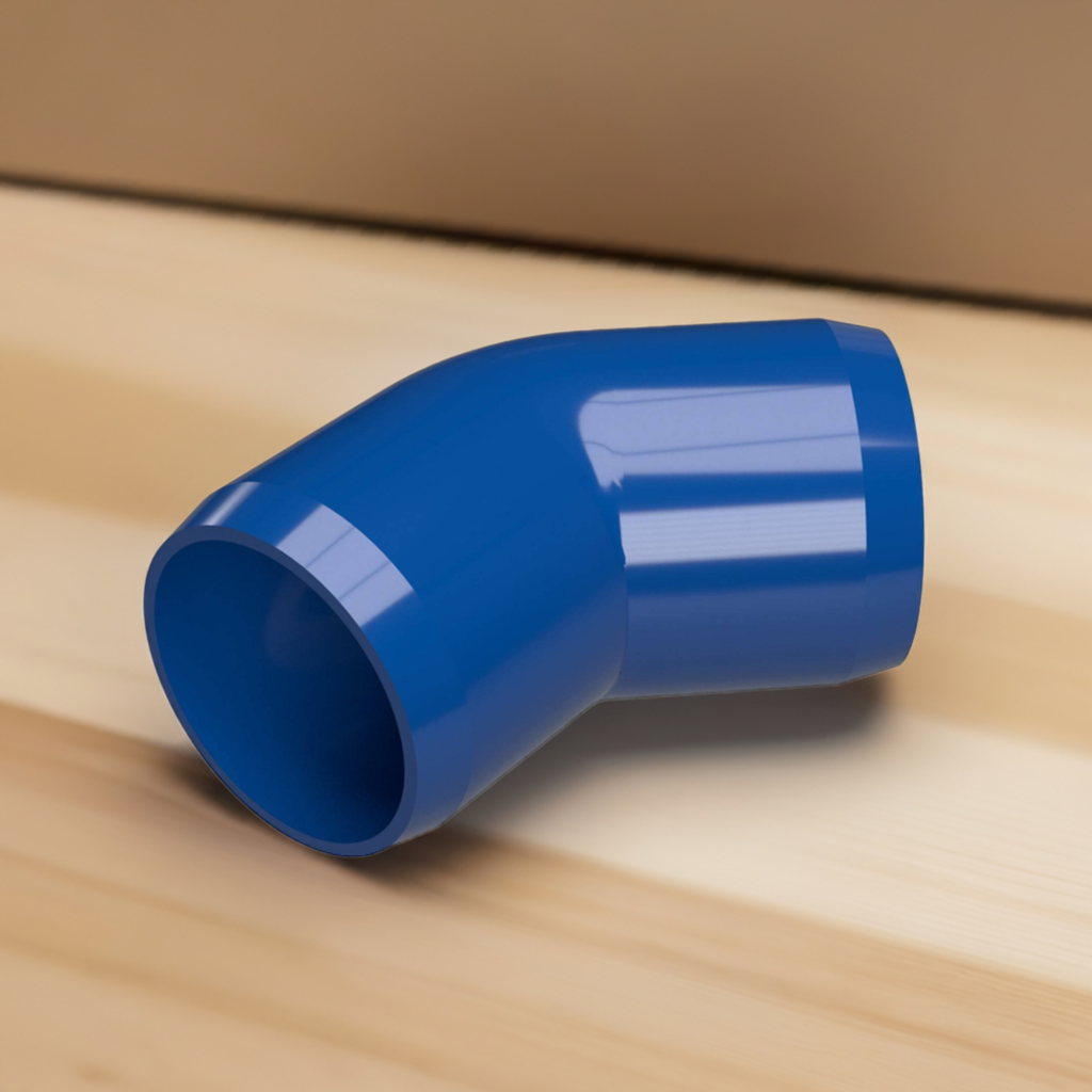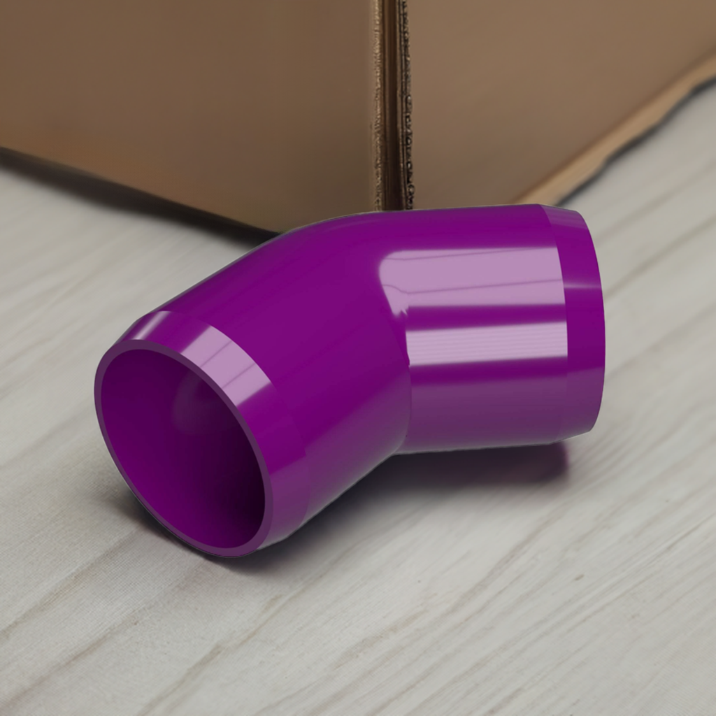 Build 45° connections for structural PVC applications with the Formufit 1/2 in. Furniture Grade PVC 45° Elbow. This PVC elbow connector joins 2 lengths of 1/2 in. Sch. 40 PVC pipe to create a 45° angle. Total of 100 fittings per box.