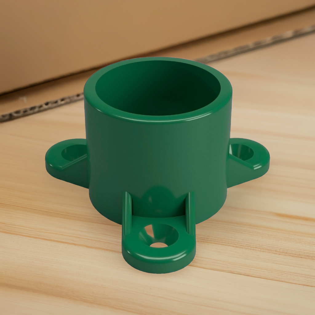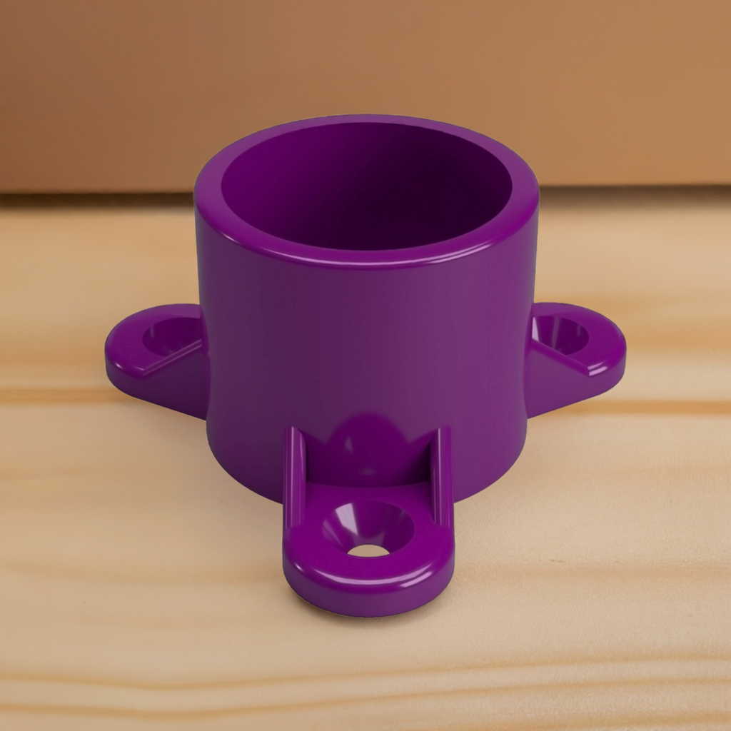 Connect PVC pipe to other materials, such as wood, metal and concrete with the Formufit 1 in. Furniture Grade PVC Table Screw Cap. This specialized PVC end cap slips over the end of PVC pipe and has 3 holes that allow fastener connection with flat surfaces. Attach table tops to PVC frames and connecting PVC pipe segments to drywall. Total of 50 caps per box.