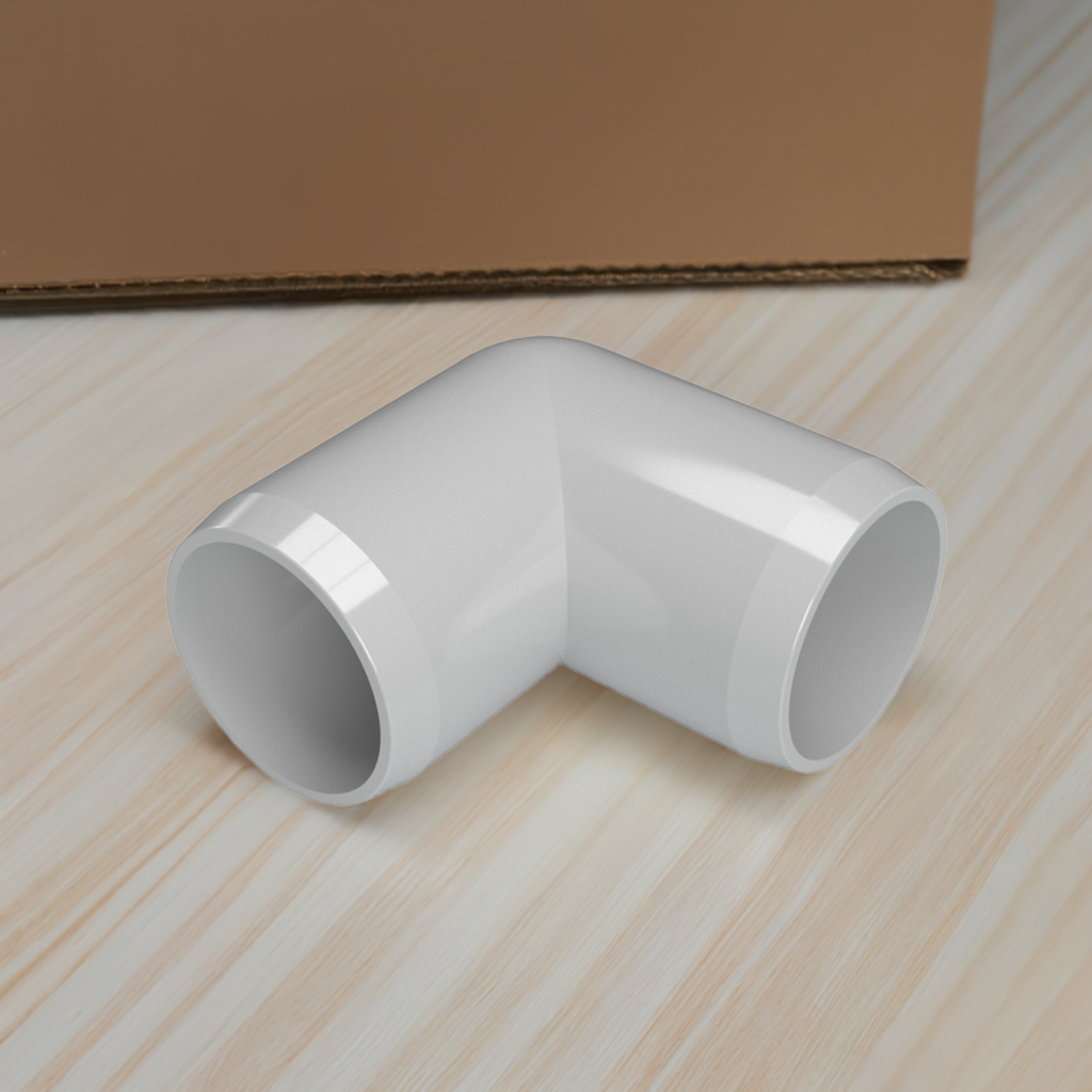 Build 90° connections for structural PVC applications with the Formufit 3/4 in. Furniture Grade PVC 90° Elbow. This PVC elbow connector joins 2 lengths of 3/4 in. Sch. 40 PVC pipe to create a 90° angle. Total of 90 fittings per box.
