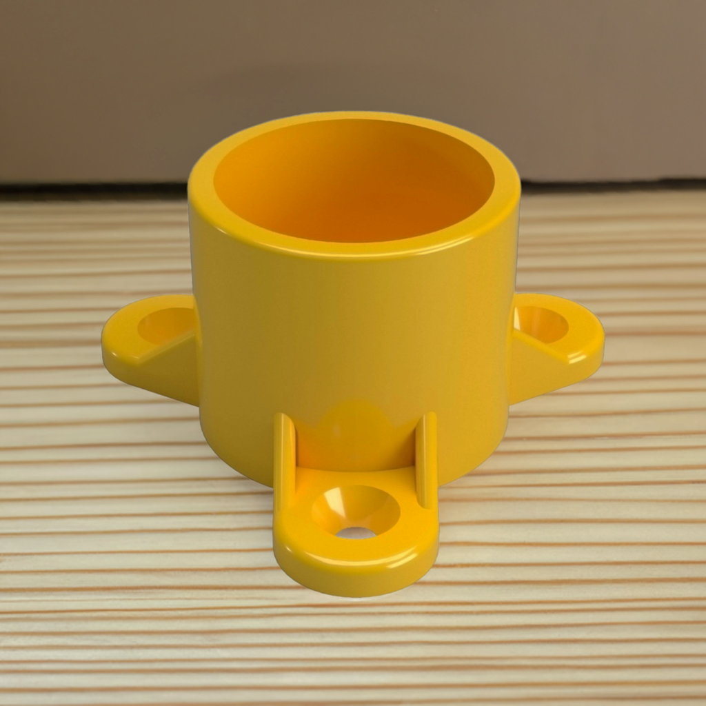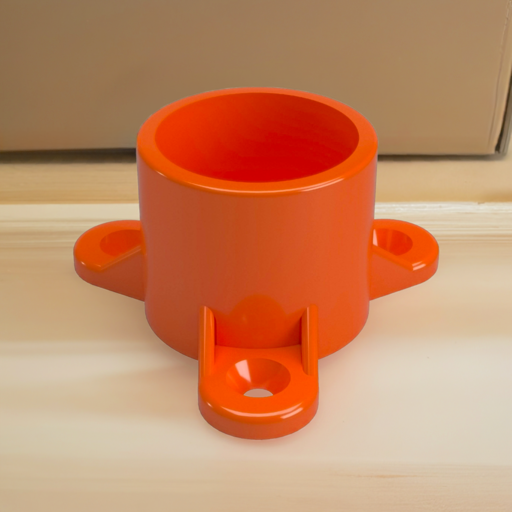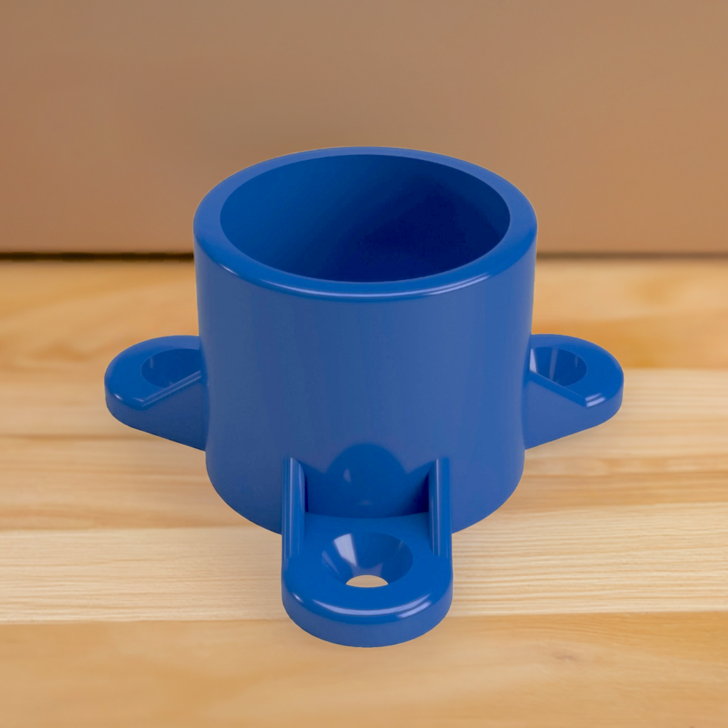 Connect PVC pipe to other materials, such as wood, metal and concrete with the Formufit 3/4 in. Furniture Grade PVC Table Screw Cap. This specialized PVC end cap slips over the end of a 3/4 in. PVC pipe and has 3 holes that allow fastener connection with flat surfaces. Attach table tops to PVC frames and connecting PVC pipe segments to drywall. Total of 50 caps per box.
